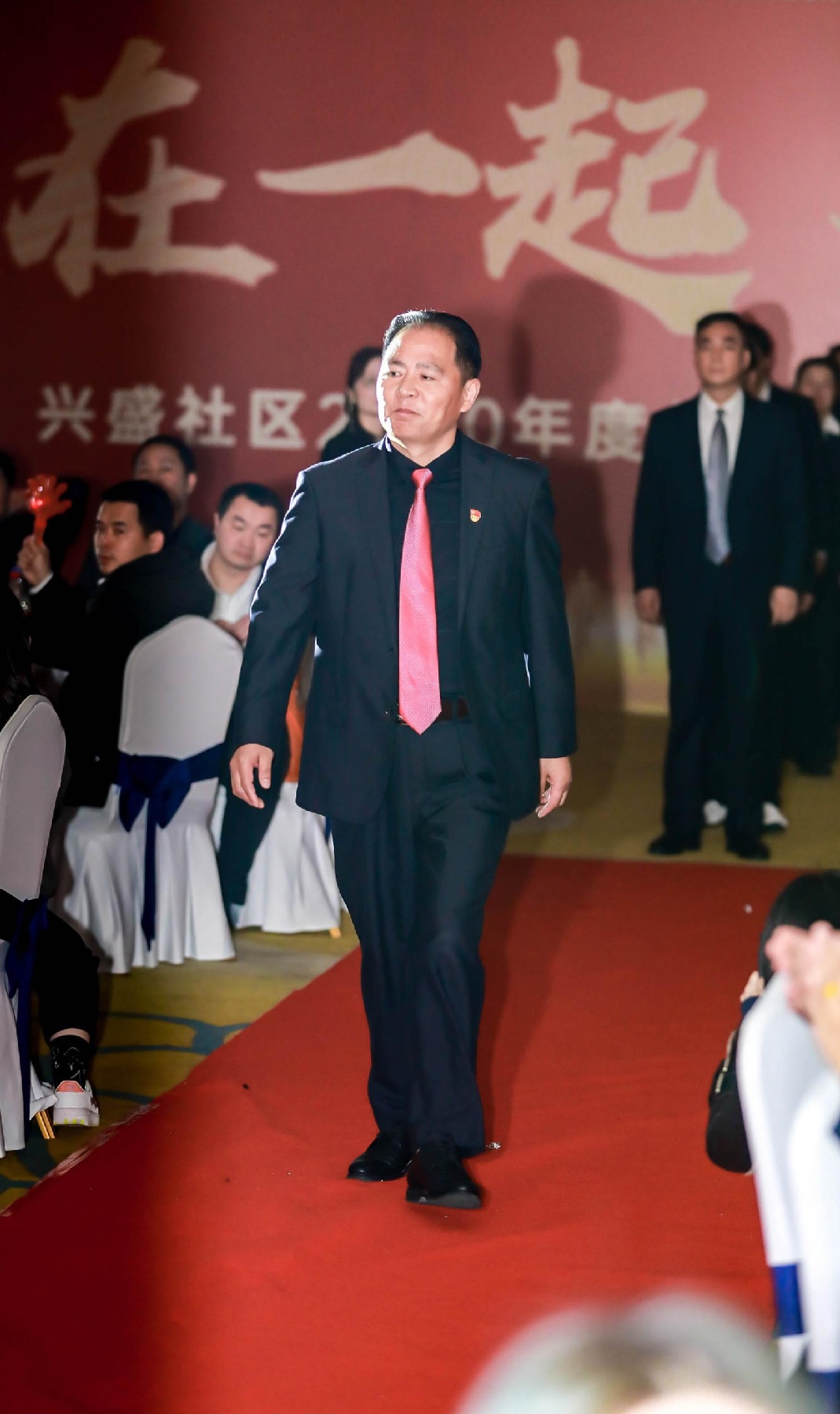 在绚丽多姿的灯光的映衬下,兴盛社区董事长兼总裁柴进先生携众高管迈着坚定的步伐从红毯走来。